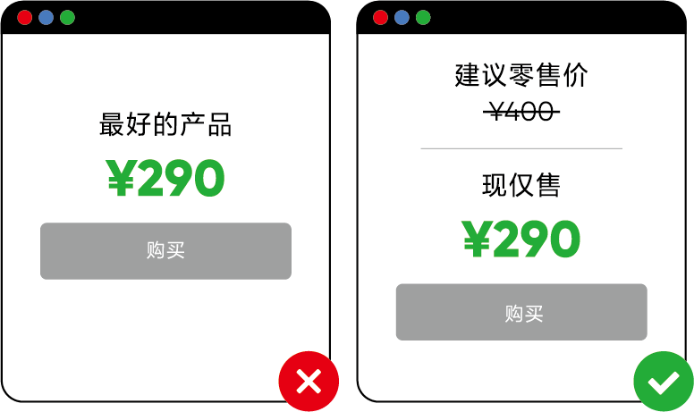 示例:通常被利用在消费场景中的认知偏差,通过前后对比来放大优惠感知,进而促进用户做出有利于我们的决策。