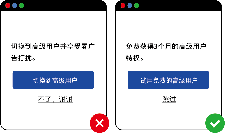 示例:为用户的立即购买提供小折扣(或免费送货),而非承诺他们在将来购买时提供更大的折扣。