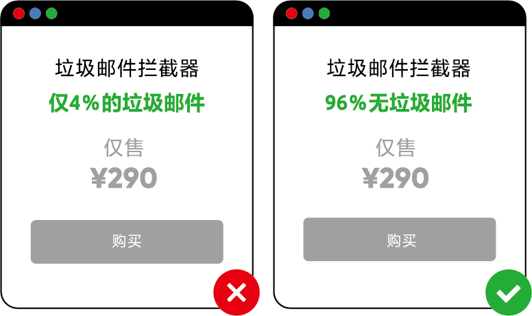 示例:谈论产品的好处时,不要夸大其词。如果它好到让人无法相信,那么人们将不会相信它。