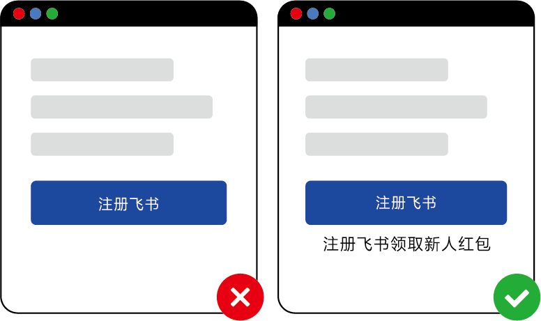 示例:CTA 按钮应在其旁边包含信息性标签,以清除不确定性。