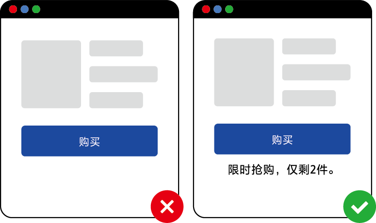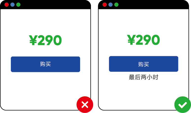 示例:限制特价交易的时间以产生紧迫感:“此优惠在x小时内结束”。