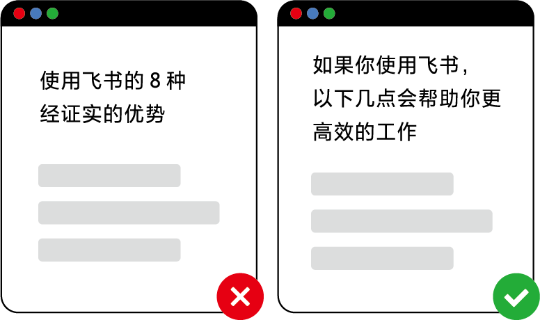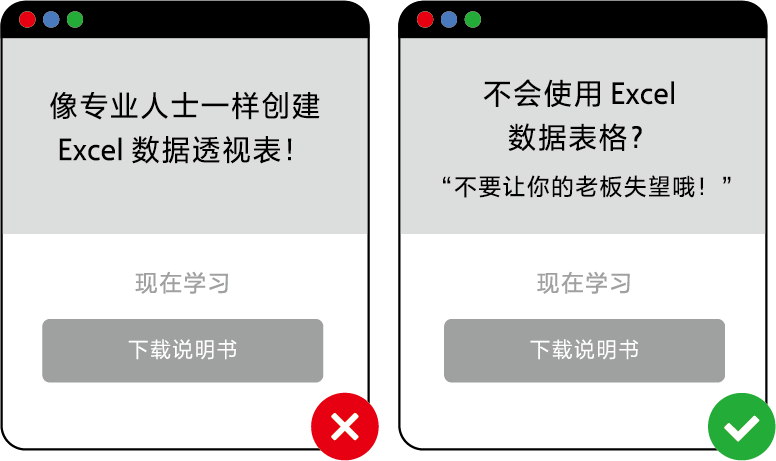 示例:在讲产品故事时,请使用个体案例,而非一般性陈述。