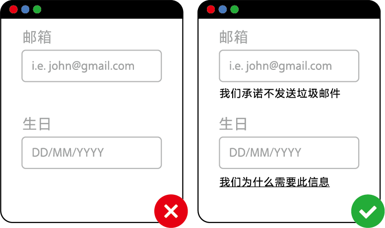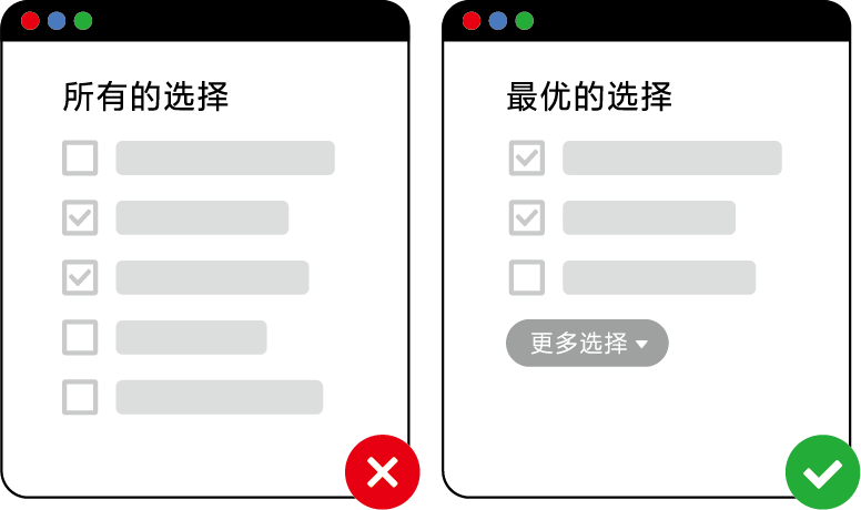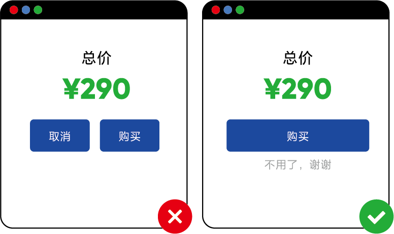 - 提供有意义的默认选项,因为用户会认为你考虑了他们的最大利益,并将尽可能选择默认选项