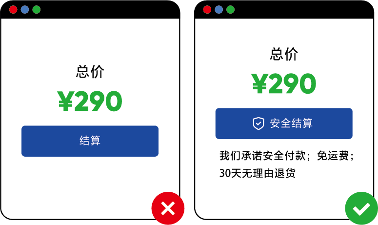 示例:在展示产品或服务时(在网站上或app内),请确保附有详细说明的照片。在产品说明中获得的信息越多,用户获得的保证就越大。