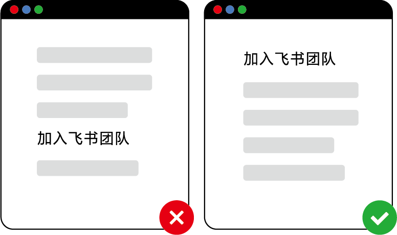 示例:确保CTA按钮以不同的样式,大小,颜色和位置显示出来,以达到不同的目的。