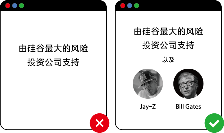 - 不要说“我们很棒,因为.....”,而是通过其他人来证实。